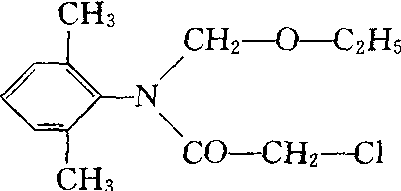 乙草胺acetochlor芽前选择性酰胺类除草剂。商品名禾耐斯、Harness、Mon097。化学结构式:  1971年由美国孟山都(Monsanto)公司首先开发成功。 性能 原药为淡黄色油状液体,不易挥发,水中溶解度为398毫克/升。熔点>0℃,沸点>200℃,密度为1.11(30℃),蒸气压>133.322帕,对高等动物低毒。原药大鼠急性口服LD50为2953毫克/千克。雌雄家兔急性经皮LD50为3667毫克/千克。对鱼的LC50:虹鳟鱼为0.45毫克/升,蓝鳃鱼为1.3毫克/升。对鹌鹑和鸭子的LC50均大于5620毫克/千克。对眼睛和皮肤有轻度刺激作用。 应用 乙草胺在大豆、花生、玉米及甘蔗地中防治一年生禾本科及一些双子叶杂草。对黄香附子、双色高粱、藜、大豆菟丝子、苋等杂草有较好的防效。在土壤中持效期为8~ 12星期。对下茬作物没有明显的影响。乙草胺用于大豆、玉米地除草,对作物安全。既可作苗前表土处理,亦可在播前浅混土2~ 4厘米处理。施药后7日内播种。用药量有效成分0.75~ 1.2千克/公顷。采用喷雾法施药,每公顷对水450~600升。苗前表土处理是在播后和杂草出苗之前施药,方法和剂量同播前混土处理。当田间杂草(如蓼等)多时,可与嗪草酮混用,提高防治效果。乙草胺acetochlor酰胺类内吸选择性、芽前除草剂。化学名称:2′-乙基-6′-甲基-N-(乙氧甲基)-2-氯代乙酰替苯胺。化学结构式如下。原药为淡黄色液体,熔点>0℃,蒸气压>133.322 Pa,沸点>200℃,微溶于水,可溶于多种有机溶剂,性质稳定,不易光解。能被杂草的幼芽和幼根吸收,抑制杂草蛋白质合成,使杂草停止生长并死亡。适用于大豆、玉米、花生、油菜及棉花等作物使用。防除稗草、马唐、看麦娘、狗尾草、藜、苋、蓼、鸭跖草等一年生单、双子叶杂草,对菟丝子也有效。对人、畜低毒,大鼠急性口服LD50为2 593 mg/kg,家兔急性经皮LD50为3 667 mg/kg。对皮肤和眼有轻微刺激作用。