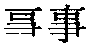 事读音sh·i(ˋ),为i韵目,属i—er韵部。吏切,去,志韵。 ❶事情;事物。 ❷职业;事业。 ❸关系;责任;事故。 ❹侍奉;服事。《孟子》:“事齐乎?” ❺从事。 上一条: 戺 下一条: 视 事〔shi〕 sib. 事情 〔shi·qing〕 sib jinl. 事先 〔shi xian〕 yil xand. 事项 〔shi xiang〕 ghobmongs. 事业 〔shi ye〕 sib niel. 事《广韵》鉏吏·志;dâi‖shì事情(方言用同音字“代”):无汝的~bbó lǐ e dâi(没你的事)。《论语·八佾》:“子入太廟,每事問。”《礼记·大学》:“物有本末,事有終始。” 事ㄕˋshì三3170①名食品。闽语。福建建阳〖 〗。②名东西。闽语。福建建阳〖 〗、松溪〖 〗。③动(时间)互相让开,避免冲突。闽语。福建厦门〖 〗。两个会的时间着得~开。④动将东西插在地中。古方言。清郝懿行《证俗文》卷十七:「《汉书・蒯通传》李奇说:东方人以物雷地中为~。」⑤量一些。闽语。福建永安〖 〗。   事shi❶从事。李白《邺中赠王大》诗:“龙蟠~躬耕。”(龙蟠:像龙一样地蟠居,即过隐居的生活。躬:亲自。)《庄子·徐无鬼》:“予又奚~焉?”(予:我。奚事:事奚,做什么。) ❷服事,侍奉。《左传·昭公二十五年》:“寡人不佞,不能~父兄。”(寡人:君王的自称。不佞:没有才能。)《史记·孙子吴起列传》:“庞涓即~魏。”(庞涓:人名。魏:国名。) ❸典故,同义合成词:“事典”。钟嵘《诗品总论》:“至乎吟咏情性,亦何贵乎用~?”(至乎:至于:吟咏,表现。何贵乎用事:怎么能以用典故为贵呢?) 事shì❶事情 △ 做~|国家大~。 ❷职业;工作 △ 他在公司里做~。 ❸灾祸;事故 △ 不好了,出~了。 ❹从事;做 △ 不~张扬|无所~事。 ❺责任;关系 △ 这事不归你管,没你的~。 事❶事情,自然界和社会中的一切现象和活动:~物︱~实︱~迹(ji)︱~态︱~务︱~件︱~理︱~例︱~项︱~由︱~宜︱~略︱~机︱~变︱~功︱~权︱~主︱~假(jia)︱~后︱~寝(qin)︱国~︱大~︱政~︱公~︱外~︱军~︱战~︱民~︱正~︱要~︱盛~︱快~︱乐~︱幸~︱喜~︱好(hao)~︱亲~︱婚~︱世~︱尘~︱人~︱万~︱心~︱情~︱趣~︱韵~︱闲~︱逸~︱遗~︱本~︱故~︱家~︱私~︱秘~︱暗~︱琐~︱差(chai)~︱苦~︱愤~︱憾~︱恨~︱怪~︱难~︱急~︱炊~︱农~︱绘~︱启~︱讼(song)~︱刑~︱丧(sang)~︱佛~︱法~︱善~︱何~︱底~︱找~︱招~︱滋~︱生~︱做~︱办~︱理~︱行(xing)~︱处(chu)~︱管~︱听~︱记~︱董~︱叙~︱白~︱知~︱懂~︱多~︱费~︱碍~︱省~︱怕~︱好(hao)~︱成~︱济~︱误~︱败~︱完~︱了(liao)~︱竣~︱时~︱往~︱后~︱~过境迁︱~半功倍︱~倍功半︱~必躬亲︱~与愿违︱~出有因︱~在人为︱~不宜迟︱万~俱备︱无~生非︱万~大吉︱一~无成︱万~亨通︱息~宁人︱实~求是︱遇~生风︱公~公办︱好~多磨︱好(hao)~之徒︱就~论~︱置身~外︱情随~迁︱便(bian)宜行(xing)~︱区区小~︱例行公~︱草草了(liao)~︱张大其~︱造谣生~︱无济于~︱无所事~︱终身大~︱确有其~︱见机行~︱人浮于~︱若无其~︱煞(sha)有介~︱少(shao)不更(geng)~︱相安无~︱相(xiang)机行~︱行若无~︱虚应(ying)故~︱因人成~︱咄(duo)咄怪~︱不省(xing)人~︱有志者~竟成︱前~不忘,后~之师︱不经一~,不长(zhang)一智。 ❷意外的损失或灾祸:~故︱~端︱祸~︱横(heng)~︱闹~︱惹~︱肇(zhao)~︱出~︱失~︱海~︱多~之秋。 ❸职业:差(chai)~︱混(hun)~︱找~︱谋~︱就~︱接~︱同~。 ❹关系或责任:回去吧,没你的~了︱这件案子里还有他的~呢。 ❺侍奉:~人︱师~︱仰~俯蓄。 ❻做;从事:~业︱从~︱无所~事。 ○举~(发动武装暴动)︱起~(发动武装的政治斗争)︱年~(年纪)。 事shì❶ 事情:好人好事│有志者事竟成。 ❷ 职业,工作:找事做。 ❸ 事故:平安无事。 ❹ 关系,责任:一走了事。 ❺ 做,从事:无所事事│不事生产。 事(8次) ❶事情,此指国事。祕密~之载心兮《章·日》~亹亹而觊进兮《辩·七》 何况一国之~兮 ~緜緜而多私兮《辩·八》 ❷事奉;效力。竭忠诚而~君兮 ~君而不贰兮《章·诵》 以~妇人乎《卜》 ❸从事;做事。心烦憺兮忘食~《辩·二》 另见[知事] 事shì❶事情。《卜居》:“龟策诚不能知事。”“知事”即知道、明了事情的原委、结局。《惜往日》:“秘密事之载心兮。” ❷侍奉,供奉。《卜居》:“将哫訾栗斯,喔咿儒儿以事妇人乎?”“事妇人”即侍奉、求媚讨好妇人。《惜诵》:“竭忠诚以事君兮。” 事shi事变 事端 事功 事故 事后 事机 事迹 事假 事件 事理 事例 事略 事前 事情 事权 事实 事态 事体 事务 事物事先 事项 事业 事宜 事由 事主 碍事 暗事 白事 办事 本事 边事 兵事 差(cha)事 差(chai)事 常事 尘事 成事 丑事出事 处(chu)事 炊事 蠢事 从事 大事 抵事 顶事 董事 懂事 多事 发事 法事 凡事 犯事 房事 费事 佛(fo)事 干事工事 公事 共事 供事 故事 怪事 管事 国事 海事 憾事 好(hao)事 好(hao)事 恨事 横事 后事 花事 坏事 婚事 混事祸事 即事 急事 记事 济事 家事 接事 旧事 就事 举事 军事 快事 来事 乐(le)事 理事 了事 领事 没事 美事 民事谋事 拿事 难事 闹事 能事 年事 农事 怕事 启事 起事 亲事 情事 趣事 惹事 人事 赛事 丧(sang)事 善事 生事 省事盛事 失事 施事 时事 实事 世事 视事 受事 私事 琐事 听事 同事 推事 外事 完事 万事 往事 问事 误事 喜事 闲事心事 刑事 行(xing)事 幸事 叙事 寻事 要事 一事 遗事 议事 轶事 逸事 用事 韵事 杂事 战事 招事 找事 肇事 正事政事 知事 执事 指事 主事 滋事 做事 事实上 事务所 事业心 百事