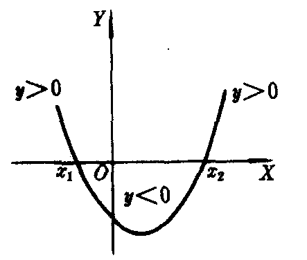 图5 如果△=0,方程ax2+bx+c=0有两个相等实根x1=x2=-b/2a,抛物线y=ax2+bx+c与X轴只有一个交点(如图4),那么,不等式ax2+bx+c>0的解集是所有不等于-b/2a的实数.而不等式ax2+bx+c<0的解集是空集;如果△<0,方程ax2+bx+c=0无实根,抛物线y=ax2+bx+c与X轴没有交点(如图5),那么,不等式ax2+bx+c>0的解集是全体实数.而不等式ax2+bx+c<0的解集是空集.☚ 直线型经验公式 二次函数的最大值和最小值 ☛ |
