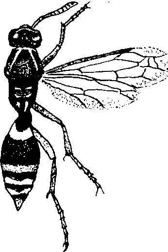 图2 拖脚蜂雌性成虫 及工蜂死亡,雌蜂在树洞或石缝处越冬。为害 该蜂为杂食性,春季取食花蜜和植物茎叶的汁液,对蜜糖有一定的趋性;夏秋季以肉食为主,捕食鳞翅目幼虫。柞蚕是该蜂最喜食的一种食物。每年7月中旬到8月中旬,为1化和2化秋蚕1~3龄期,是二纹长脚蜂捕食盛期。二纹长脚蜂捕食柞蚕时,先落到蚕的侧面,用大颚咬破蚕体拖走,自己吃掉或嚼成肉团抱回巢喂养幼虫,高温干旱年份为害较重,有时在几天之内能把蚕场里的柞蚕全部吃掉。 防治 雌蜂在春季有集中取水和喝水的习性,利用自然水坑或人造水坑上盖枯枝草叶,连续几个晴天以后,选择温暖无风的天气,上午9时左右,向水坑里投放浓度在1%上下的敌百虫,一天之内可将附近的雌蜂杀死80%以上。 |