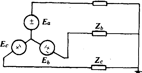 地相的电压损失折算成线电压损失为△Udx=△Udd+△Uj≈△Udd。地相的电压损失一般小于架空相的电压损失,由此造成用户侧电压的不对称。 导线截面选择 一般按允许电压损失选择,以架空相电压损失不超过允许电压损失为控制条件。计算方法同普通三线三相制(见导体截面选择)。 短路电流计算 在短路后等值电路(图2和图3)图中Za=Zb=(r0+jx0)L。Za、Zb为架空相的阻抗,r0、x0、L为短路点到变电所间两线一地线路的长度(千米)。Zc为地相的阻抗,Zc=R+0.05L+jxel,R为变电所的接地电阻(欧);0.05欧/千米为大地的单位电阻。