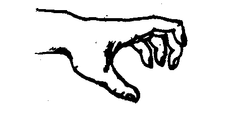 少林拳手型。五指微内合;食、中、无名、小指屈成弧形;无名指梢端,扣压于小指梢节,其余各指互不相靠。