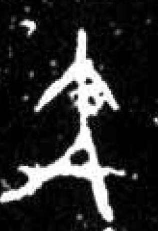 許慎所釋構形及本義與古文字字形難合。古文字象人正面站立,兩腿間有一横線,構形之意不明。或以爲象遮攔之形。實物文字中常表示高,爲引申義。