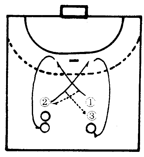 | 释义 | 交叉换位 交叉换位进攻队员利用交叉跑动互换位置并结合传球打乱对方防守部署,以达到射门和突破目的的简单配合。基本方法:O4号持球向防守队员△3号与△4号之间的空档切入。迫使对方关门防守,O5号由O4号身后交叉切入并接其传球突破
