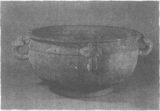 | 释义 | 交龙纹四耳铜 交龙纹四耳铜战国。储水器。高25.1厘米,口径47.3厘米,底径25.6厘米。重125公斤。上海博物馆藏。此侈口,宽唇,缩颈,圈足。颈腹间有四兽耳,颈部为繁密的交龙纹。腹部纹饰分为两段,同为精丽的交龙纹,龙躯干内填以细回纹和几何纹。在春秋战国时期,的形体大小颇为悬殊,但在传世品和发掘品中,所见以大为多,小型者少,此应属三晋之器。