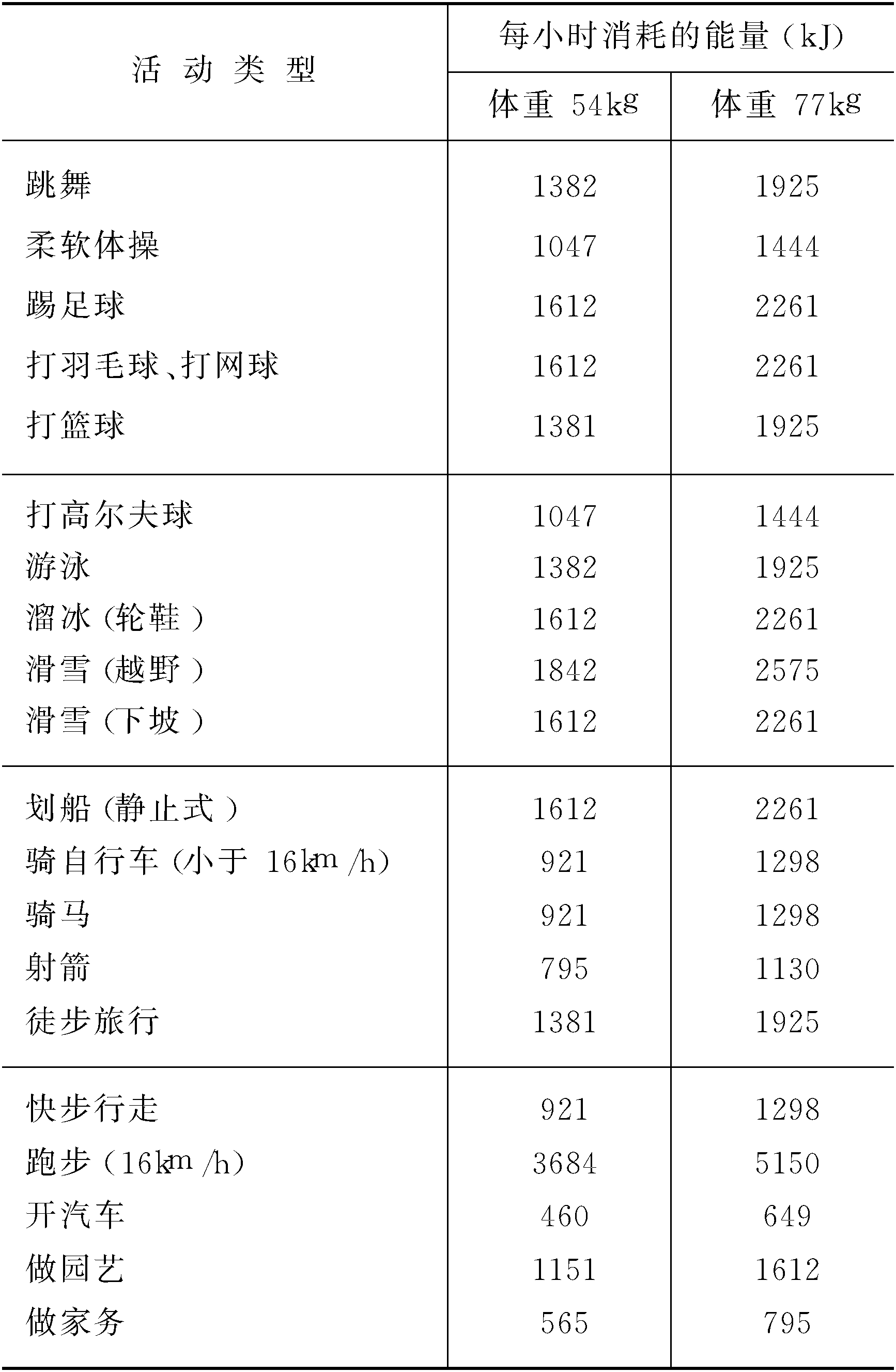 人体活动消耗的能量