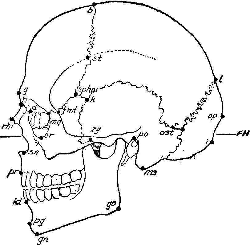 图2 颅骨主要测点示意图 之间的宽度。(17)下颌联合高 (id-gn),即下牙槽点与颏下点之间的垂直距离。用直脚规测量。 (18)下颌支高,用直脚规测量从髁突最高点至下颌角点之间的高度。 (19)下颌支最小宽,用直脚规测量下颌支最小的前后径。 ☚ 人体形态观察 活体测量 ☛ |