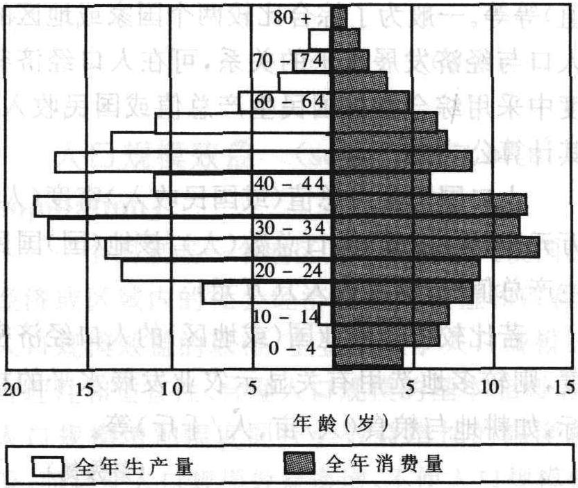 ❸各年龄组相应的人均经济指标值。在人口学研究中,构建人口经济年龄金字塔,不仅可以反映某一时期(通常为某一年)特定人口的宏观人口经济关系模式,而且能够通过对某一人口假定“平均人”在各个时期及生命周期各个阶段经济活动资料的累积,考察该人口的平均个人一生经济活动的总成本、总效益及其差额状况。