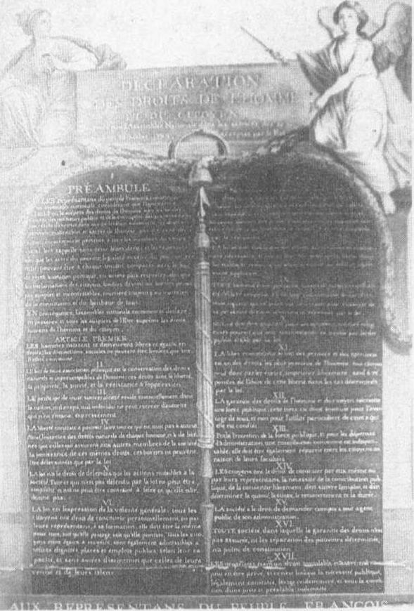 人权宣言全文 ☚ 8月4日之夜 1791年宪法 ☛ 人权宣言 人权宣言Renquanxuanyan18世纪法国资产阶级革命中的纲领性文件,全称《人权与公民权宣言》。1789年8月26日由制宪议会通过,后经修改成为1789年宪法的序文。《宣言》共17条,概括了18世纪启蒙运动和美国《独立宣言》的政治思想和主张。主要内容为: ☚ 三级会议 雅各宾派 ☛ 人权宣言全称“人权与公民权宣言”。18世纪法国资产阶级革命的纲领性文件。1789年8月26日由制宪会议通过,1791年《法国宪法》列为序言。共17条,主要内容:人生来是而且始终是平等的;自由、财产、安全以及反抗压迫是天赋的不可剥夺的权利;主权在民;私有财产神圣不可侵犯。在反对封建专制的斗争中具有较大影响和历史进步作用。 人权宣言全称《人权与公民权宣言》,法国资产阶级革命的纲领性文件。1789年8月26日制宪会议通过。共17条。以孟德斯鸠、卢梭等人的资产阶级政治学说为理论基础,宣布自由、财产、安全及反抗压迫是“天赋人权”;规定私有财产神圣不可侵犯;确认“法律面前人人平等”和“主权在民”,对法国和欧洲的反封建斗争起了进步作用。 人权宣言 《人权宣言》人权宣言是法国资产阶级革命时所发表的 《人权与公民权宣言》 的简称。1789年8月26日制宪会议通过。全文除序言外共17条,扼要列举了资产阶级的政治纲领和宪法原则,成为其后资产阶级代议民主制国家所崇奉和仿效的经典性政治文件。主要规定为: 人生而平等,享有自由、财产、安全和反抗压迫的权利。自由包括言论、著作和出版等自由,其行使以保证社会其他成员能享有同样权利为限度。财产神圣不可侵犯,非因合法认定的公共需要,并经公平和事后的赔偿,不受剥夺,主权属于国民。实行分权原则,任何团体或个人不得行使主权所未明白授予的权力。法律为公共意志的表现,公民均有权亲自或通过其代表参与制定。公民在法律面前人人平等; 任何人非于法定情况下并经法定程序不受控告、逮捕或监禁。动议、发布、执行或指示他人执行专断命令者应受惩罚; 但抗拒合法的传唤或扣押者构成犯罪。承认法律不溯既往和无罪推定原则。上述资产阶级的民主与法治原则,在反封建专制的斗争中曾起过重大的进步作用。 ☚ 美利坚合众国宪法 魏玛宪法 ☛ 人权宣言 人权宣言1948年12月10日联合国第3届大会通过的关于人权保护的文献。1946年6月,联合国经济及社会理事会根据 《联合国宪章》 第68条规定建立了人权委员会。1948年6月人权委员会起草了世界人权宣言草案,同年第3届联合国大会以48票赞成、0票反对、8票弃权通过。 ☚ 法国政治制度 法兰西第五共和国政治制度 ☛ 人权宣言 《人权宣言》《人权与公民权宣言》 的简称。18世纪法国资产阶级革命的政治纲领。《人权宣言》除序言外,共17条,基本内容包括: 人生而平等,享有自由、财产、安全和反抗压迫的权利。宣言确认的自由是言论、出版和著述等自由,并指出自由权利的行使以保证社会其他成员享有同样的权利为限度。宣言确认财产神圣不可侵犯,指出非因合法认定的需要,并经公平和事先的赔偿,不受剥夺。宣言宣布法律应体现公共意志,在法律面前人人平等,公民有权参加或通过代表参加制定法律,法律平等地保护和惩罚所有人; 任何人没有法定原因并经法定程序,不受控告、逮捕和监禁; 宣言确认法律不溯既往和无罪推定原则。宣言宣布主权属于国民,并提出分权原则,任何团体和个人都不得行使主权未授予的权利。《人权宣言》体现了孟德斯鸠、卢梭等法国资产阶级理论家的政治理论思想。《人权宣言》虽然不是一部宪法,但它曾被作为序言列入1791年的法国宪法中,成为该宪法的重要组成部分。人权宣言在国际上产生过较大的影响。 ☚ 一党制 人身自由 ☛ 人权宣言 人权宣言Declarationof the Rights of Manand the Citizen全称《人权与公民权宣言》,18世纪法国资产阶级革命的纲领性文件。1789年8月26日由法国制宪会议通过,在1791年法国宪法中被列为序言。其基本精神是反对封建制度,提倡人权和法权,维护资产阶级的社会政治地位和私有权。它指出:在权利方面,人们生来是而且始终是自由平等的;主权在民;法律是公共意志的体现,公民在法律面前一律平等;私有财产神圣不可侵犯;自由是指有权从事无损于他人、不超过法律规定限度的言论、行为和著述等。《人权宣言》第一次把18世纪启蒙学者孟德斯鸠、卢梭等的政治学说用法律形式固定下来。它在全人类的词藻下,实质上维护资产阶级的利益,但在历史上曾起过进步作用。 ☚ 人权 人治 ☛ |