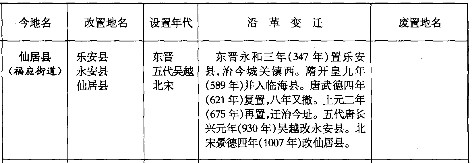 仙居县(福应街道)乐安县永安县仙居县东晋五代吴越北宋东晋永和三年(347年)置乐安县,治今城关镇西。隋开皇九年(589年)并入临海县。唐武德四年(621年)复置,八年又撤。上元二年(675年)再置,迁治今址。五代唐长兴元年(930年)吴越改永安县。北宋景德四年(1007年)改仙居县。