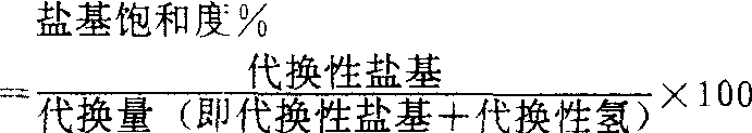 | 释义 | 代换量、代换性盐基总量及盐基饱和度的测定 代换量、代换性盐基总量及盐基饱和度的测定daihuanliang、daihuanxing yanji zongliang ji yanjibaohedu deceding土壤代换性由土壤胶体表面性质所造成,包括代换性盐基及代换性氢。两者的总和,便是盐基代换量,用“毫克当量/100克土”表示。代换性盐基和代换量的比例,叫做盐基饱和度,用百分数表示,可由下式计算出来: