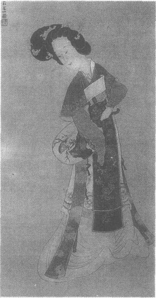 | 释义 | 任熊瑶宫秋扇图轴 任熊瑶宫秋扇图轴清。任熊(见《任熊姚燮诗意图册》条目)绘。绢本设色。纵85.2厘米,横33.5厘米。江苏省南京博物院藏。此幅工笔重彩描绘了一位宫装的女子,左手执鹦鹉纨扇,右臂微曲,似要提裾而行。衣纹线条细劲、流畅,笔法细腻,设色浓丽古雅而和谐。衣服上的纹饰、发髻及饰,以至纨扇上的鹦鹉、树石描绘都很细腻,衬托出人物的秀美与端庄,又不失古雅,清新活泼,有陈老莲之风,但在衣纹用笔及造型风格上又有自己的面貌。左上作者自署:“咸丰乙卯清明第三日,渭长能摹章侯本于碧山栖”,诗堂有李嘉福小楷录《瑶宫秋扇曲》,署年“乙卯”,为咸丰五年(公元1855年)。