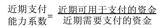 2. 企业近期支付能力系数。指企业在近期可用于支付的资金与近期需要支付的资金之间的比率。其计算公式为:
