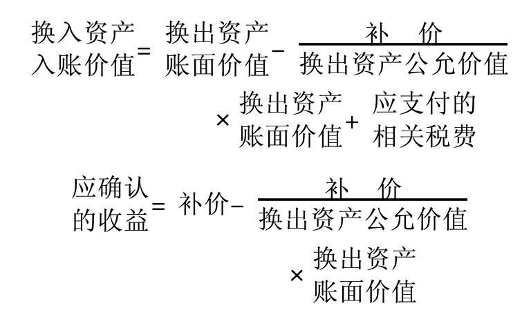 企业非货币性交易企业间以非货币性资产进行的交换。这种交换不涉及或只涉及少量的货币性资产(即补价)。货币性资产,是指持有的现金以及将以固定或可确定金额的货币收取的资产,包括现金、应收账款和应收票据,以及准备持有至到期的债券投资等。非货币性资产,是指货币性资产以外的资产,包括存货、固定资产、无形资产、股权投资,以及不准备持有至到期的债券投资等。企业发生非货币性交易时,应以换出资产的账面价值,加上应支付的相关税费,作为换入资产的入账价值。 在非货币性交易中如果发生补价,应区别不同情况处理:支付补价的,应以换出资产的账面价值,加上补价和应支付的相关税费,作为换入资产的入账价值。收到补价的,应按如下公式确定换入资产的入账价值和应确认的收益:  在非货币性交易中,如果同时换入多项资产,应按各项换入资产的公允价值与换入资产公允价值总额的比例,对换出资产的账面价值总额与应支付的相关税费进行分配,以确定各项换入资产的入账价值。公允价值,是指在公平交易中,熟悉情况的交易双方自愿进行资产交换或债务清偿的金额。 |