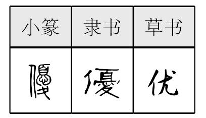 小篆以来的形声字。从亻(人),忧(憂)声。本丰饶,充足义。组词如:优裕。笔画繁多,约明代简化为优,换声旁,易认易写,现作规范字。见《总表》。引申为美好的。如:优等|优良。又引申为胜任而有余力,擅长。如:能优为之。转为反义,柔弱,少决断。组词如:优柔(如:优柔寡断)。古代又指娼妓和演剧的人。组词如:优伶。