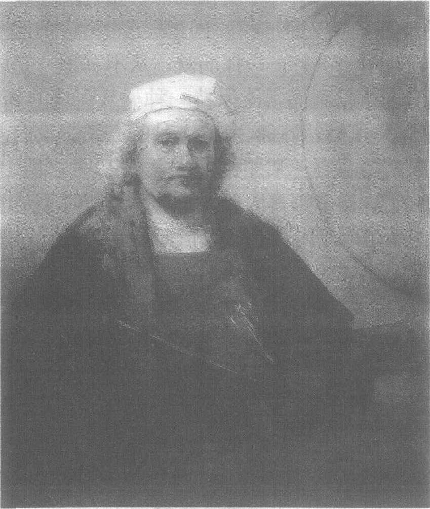 | 释义 | 伦勃朗《自画像》 伦勃朗《自画像》伦勃朗的自画像,是遗留给后世的最伟大的自传之一。当我们初看这幅收藏在伦敦多尔威奇学院的自画像的时候,浮现在脑海中的,可以说是被囚禁在这张疲劳终生的脸之中的灵魂吧。然而让我们把视线暂且从伦勃朗的脸上移开,来欣赏 一下他在画布上的巧妙配置。猛一看去是如此丰富而又自然,细细品味其效果,全是来自 一种几何式的单纯。伦勃朗这个时候放弃了1660年前后他成功时代的巴洛克形态,重新回到了文艺复兴巨匠们那种将画面构成建立在立方体和三角形基础上的画法。从画中伦勃朗裹在头上的白头巾来看,他的每一笔中都含有结构,他清楚地知道一个面与另一个面应当怎样衔接,他运笔极其自如而又充满感情。这一点很像后来的塞尚。塞尚只是为自己而画画,伦勃朗这个时候也是一样。他破产了,感到很孤独,然而倒也自由自在。因此他能够把左手的调色板和画笔用非常接近我们今天的绘画那种具有很强表现力的几何形画出来,而没有采取17世纪中叶荷兰绘画中通常的做法,即特意细心地磨光、提亮画的表面。在这幅画中,他的头极富立体感,在浅色墙壁的衬托下分外突出。他的创造力甚至比以前更加旺盛。