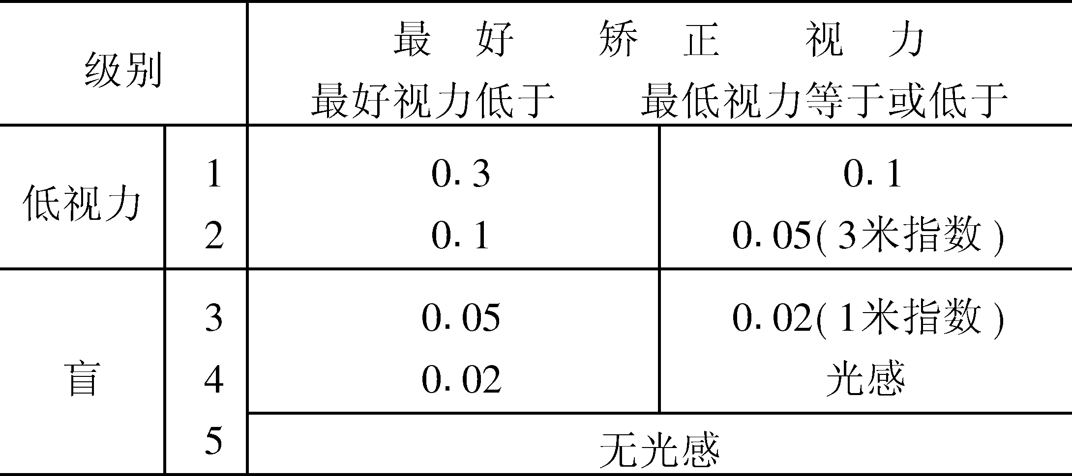 | 释义 | 低视力及盲目分级标准 低视力及盲目分级标准grading standard of hypopsia and blindness1973年WHO提出低视力及盲目的分级标准见下表: 低视力及盲目分级 ☚ 色觉 夜盲 ☛ |