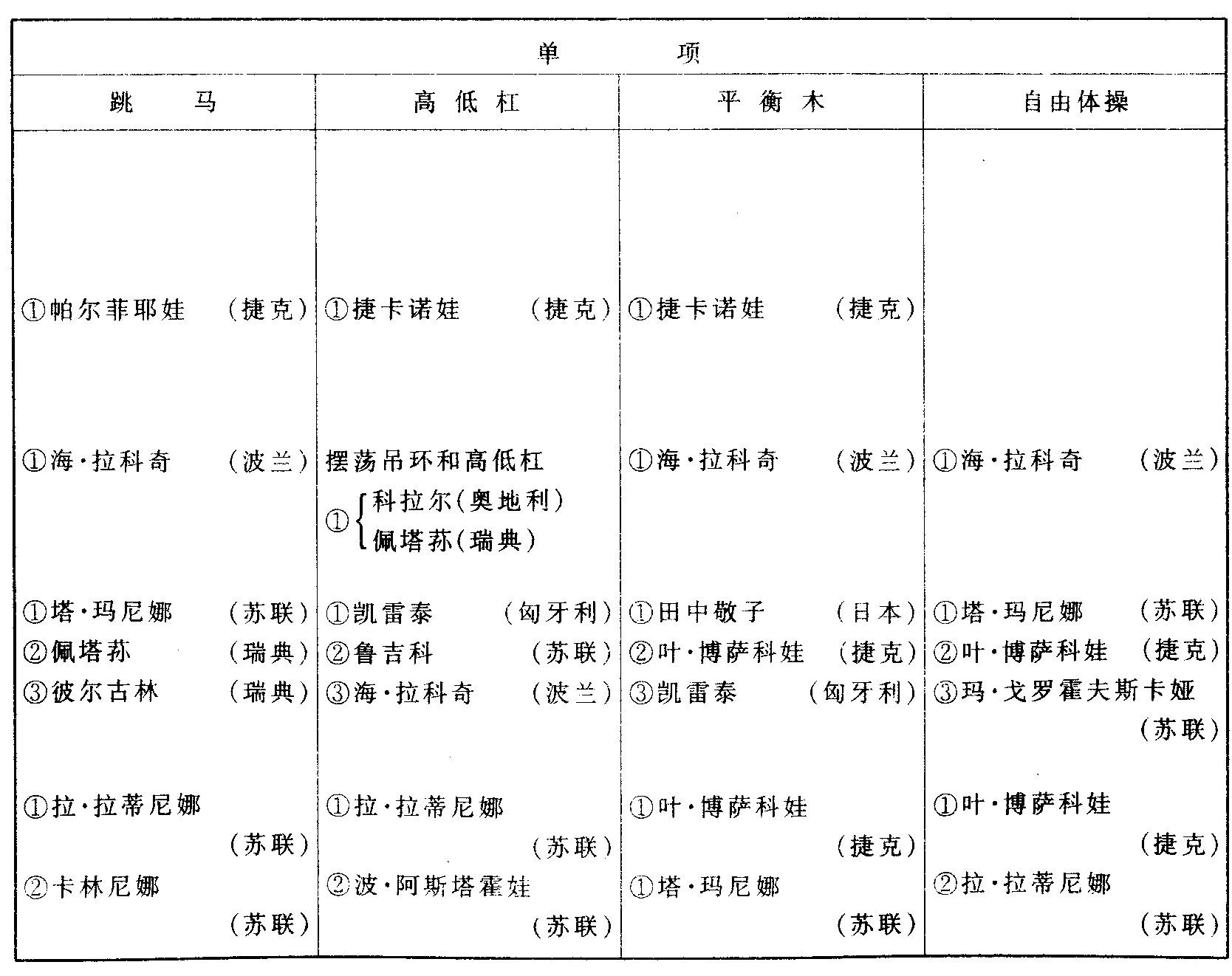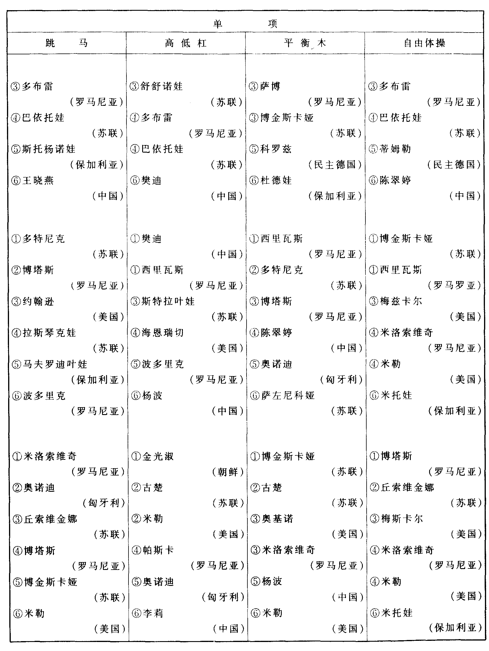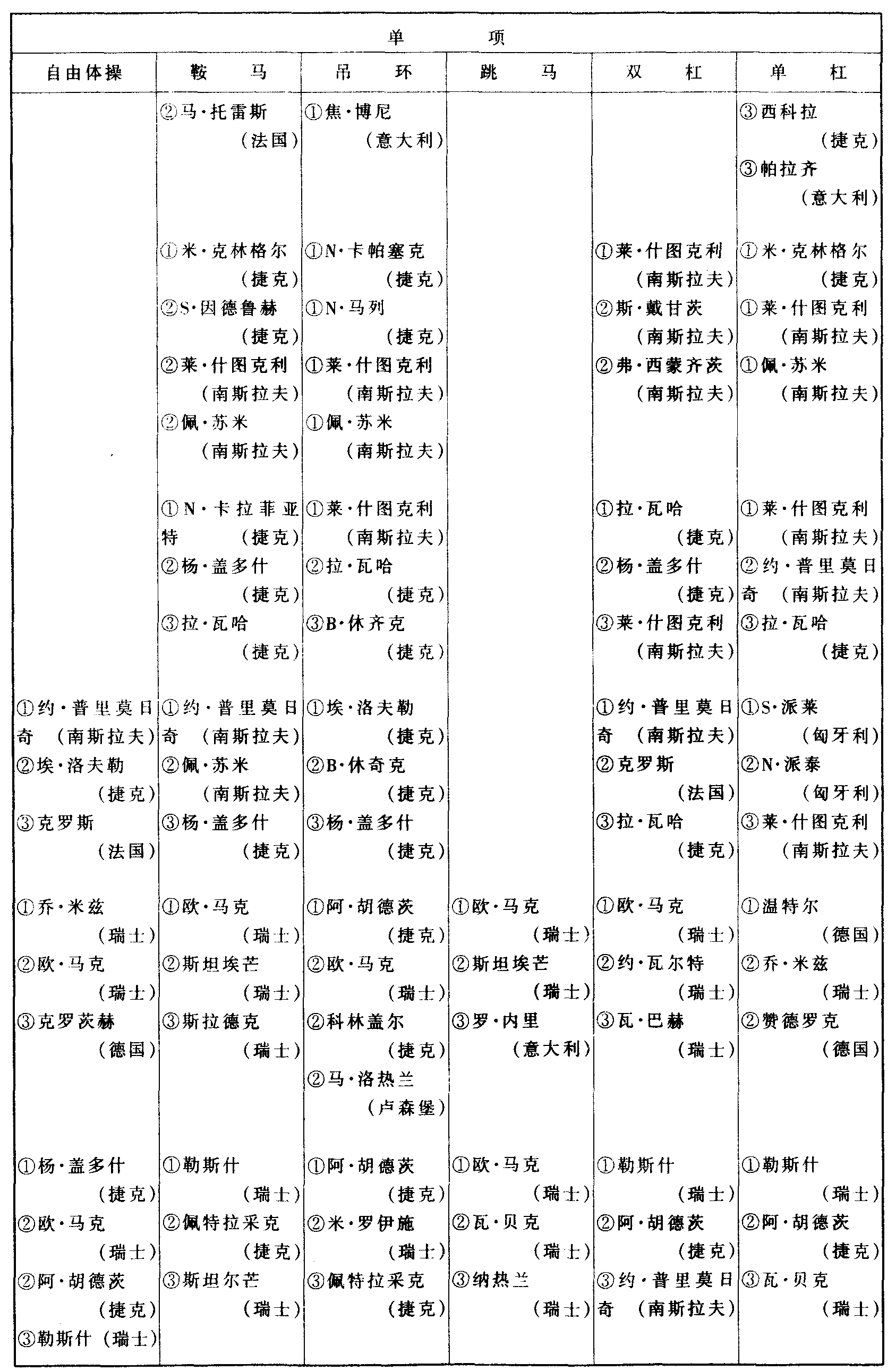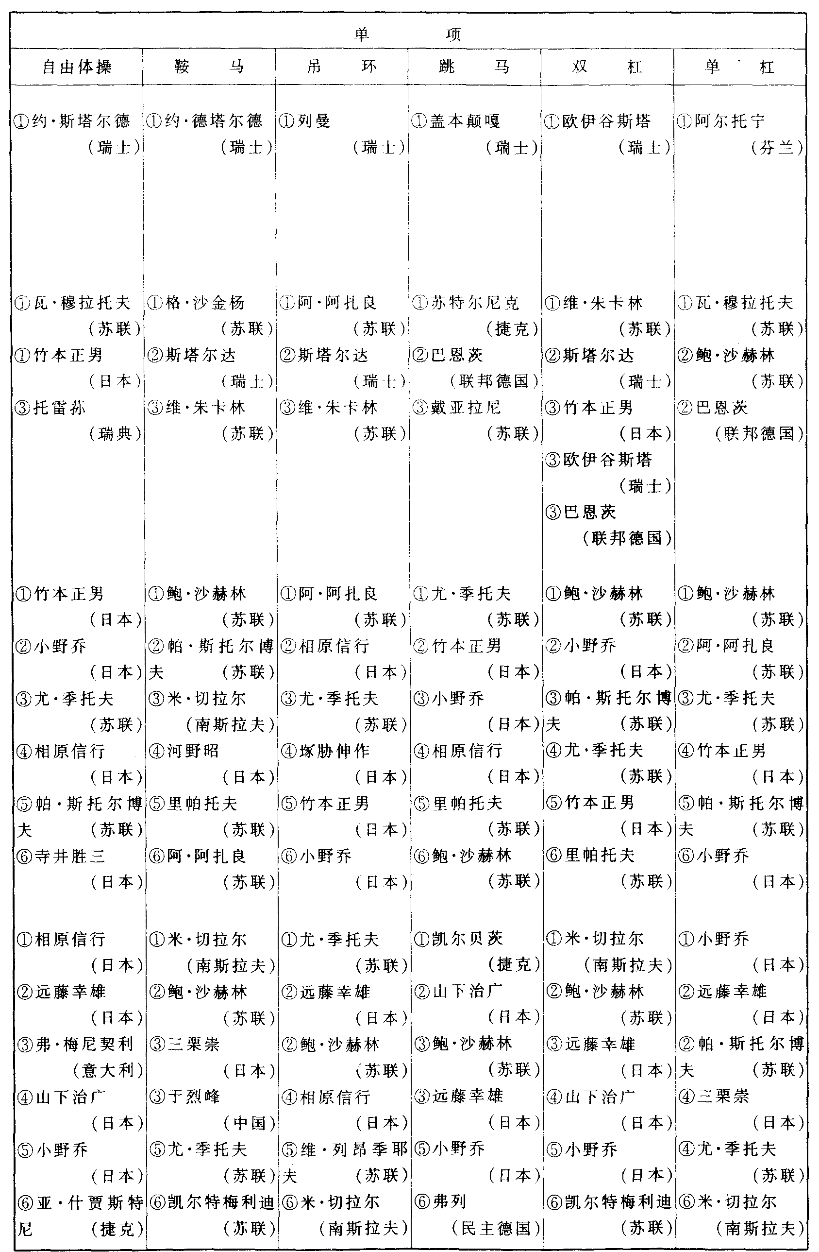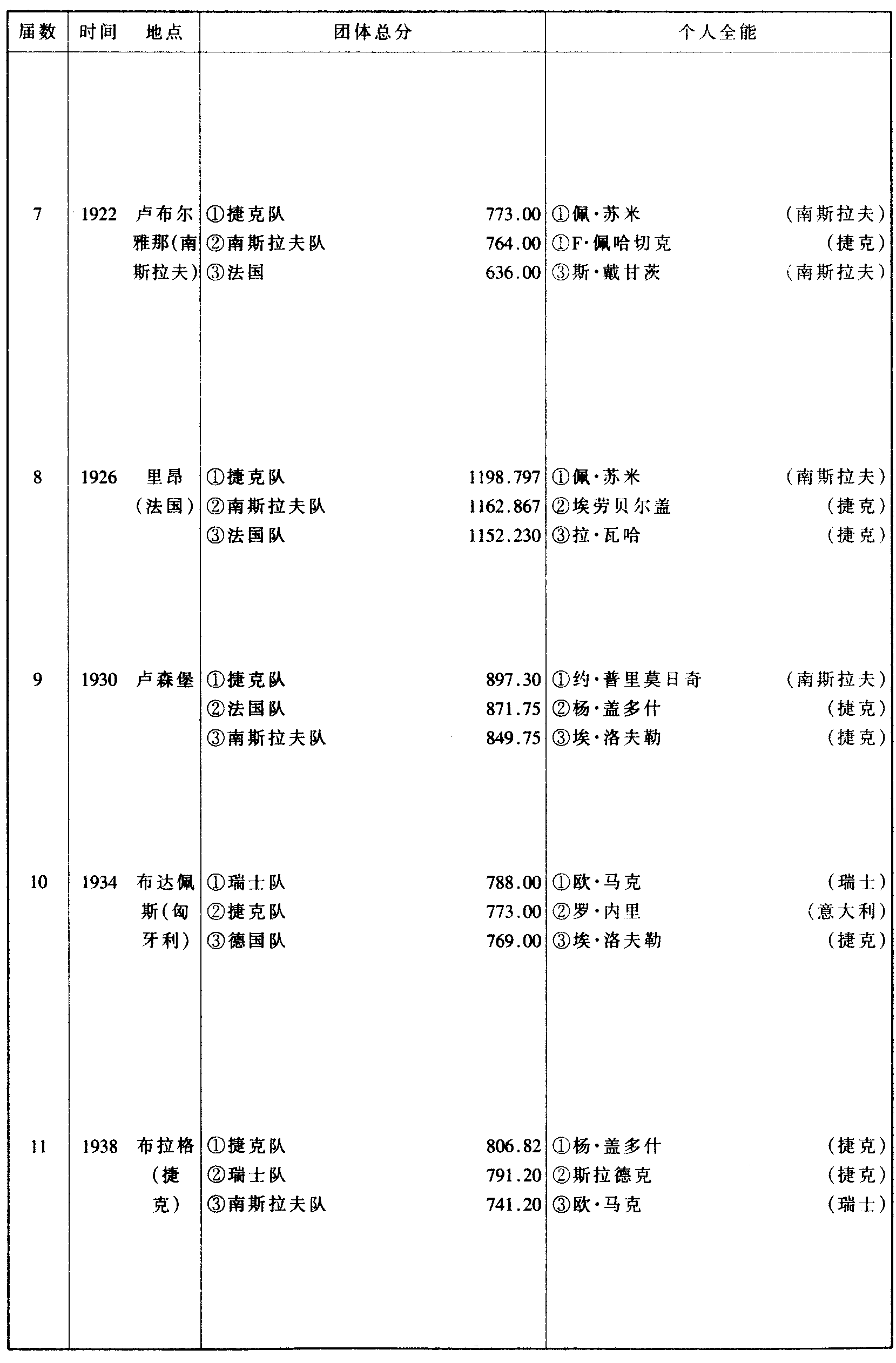 历届世界体操锦标赛比赛成绩