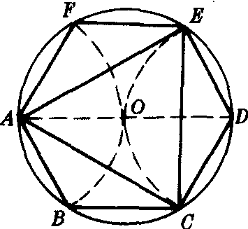 作法 ❶作⊙O的直径AD(如图);❷分别以A,D为圆心,OA为半径作弧交⊙O于B,F,C,E;❸顺次连结A,B,C,D,E,F.则六边形ABCDEF就是所求的圆内接正六边形.