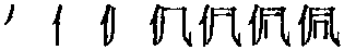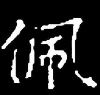 [亻(人,意符)+凡(聲符)+巾(意符)→佩(《説文》:“佩,大帶佩也。從人,從巾,從凡。佩必有巾,巾謂之飾。”佩,掛,帶〈佩帶、佩戴、佩劍〉;古代系在衣帶上的玉飾〈玉佩〉;心悅誠服〈佩服、欽佩、敬佩、可佩〉。)]