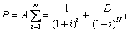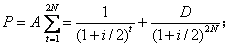 其中D为债券的面值;A为每次付息额;i为市场收益率。以上四个债券价格公式,既是这四种债券的发行价格公式,也是其转让价格公式。在作为发行价格公式时,公式中的N代表债券的期限年数;在作为转让价格公式时,N代表债券从转让时到债券到期日的实际年数。