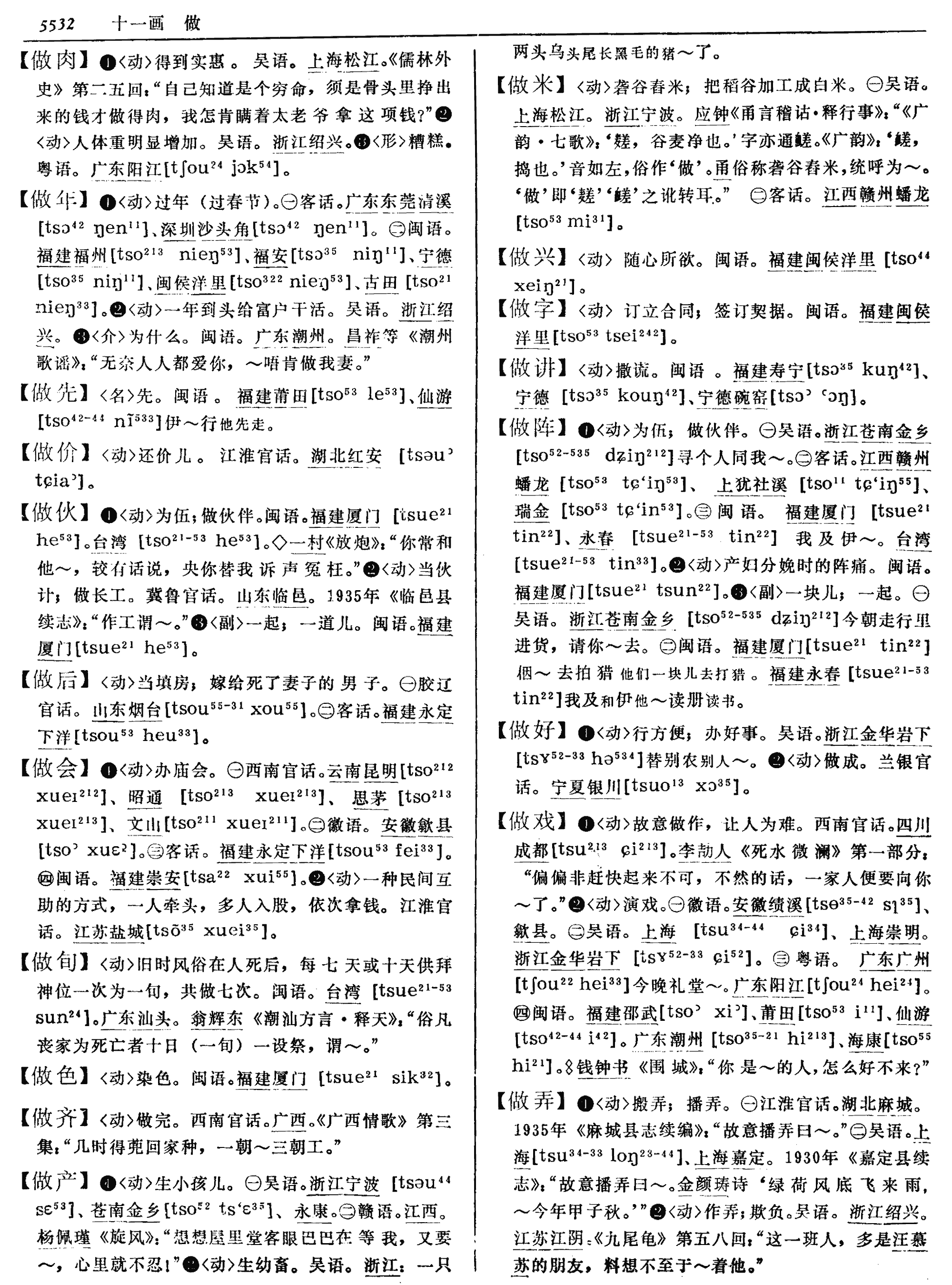 释义 做齐5532做完。西南官话。广西。《广西情歌》第三集:「几时得蔸回家种,一朝~三朝工。」