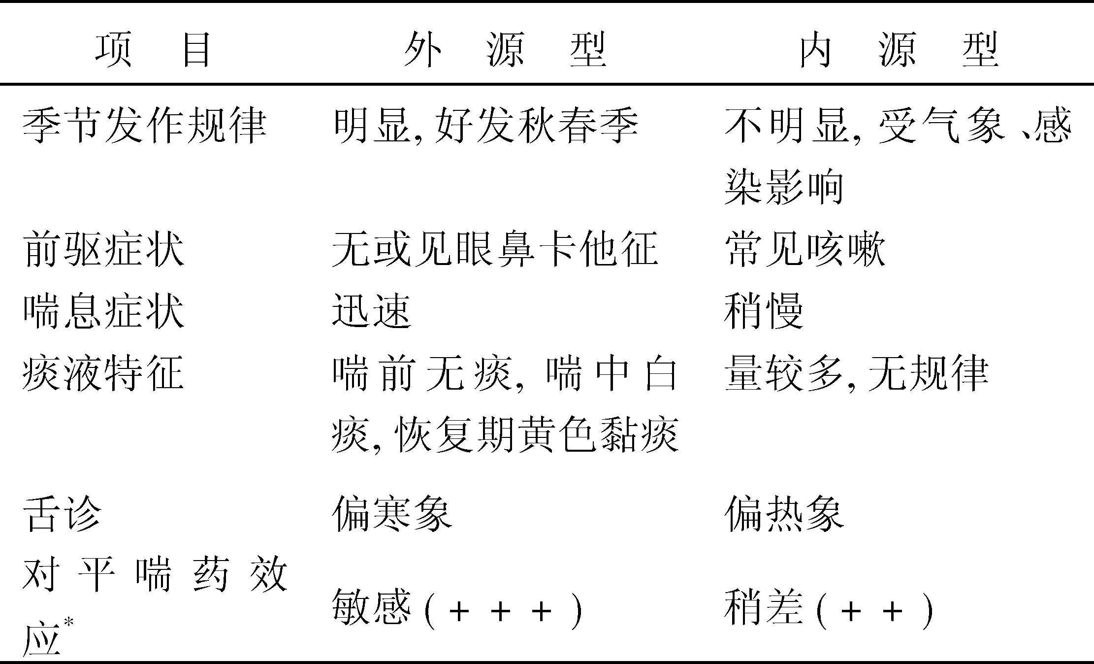 不同类型的哮喘鉴别
