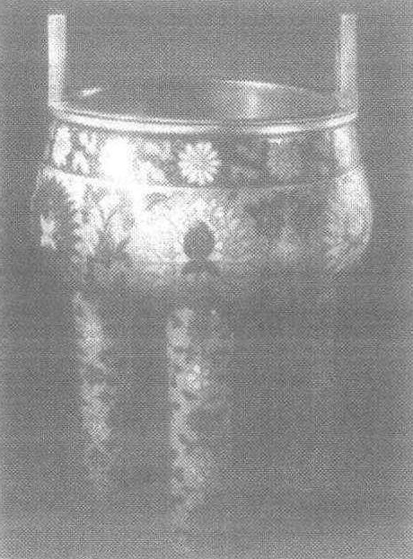 珐琅即今之搪瓷掐丝珐琅系珐琅工艺的一个品种,盛行于阿拉伯地区,于元代传入我国,至清代始称掐丝珐琅或景泰蓝。此炉为元代制品,清宫旧藏。炉系红铜胎铸造,通高28.4厘米,腹径 19.2厘米。冲耳、圆腹、三柱足,通体天青色珐琅地。一耳上部浇铸时铜液溢出,后补錾五瓣花,另一面掐菊花纹。耳外面填深绿珐琅地,里面填浅蓝珐琅。口下饰绿色珐琅带,掐十二朵填白珐琅菊花。炉腹掐缠枝白、黄、紫、绿各色宝相花六朵,炉底掐菊花四朵,炉足掐菊梅连枝纹。此炉珐琅色调深邃、沉着、稳重、莹润,具有宝石的光泽与质感。虽是初创时期制品,铜丝粗细不匀,珐琅间有气孔,技艺难免不够精湛,但匠人却用心为之,掐丝生动挺拔,犹如国画之泥金线描。