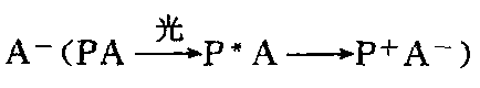 图 3 光合原初反应示意图 光合原初反应的产物寿命极短(10-15~10-10秒),数量微少。反应速度很快,且不受温度影响。由于研究方法(包括核磁共振、微分光谱等)的改进,原初光反应的研究工作取得了相当进展。美国学者皮林(M.J. Pelling)于1979年第一个成功构筑成与光合细菌的反应中心相似的人工复制系统,向人们显示了人工模拟光合作用和开发利用太阳能的前景。 光合原初反应primary reaction of photosynthesis光合作用中光合色素吸收、传递光能并引起第一个光化学反应(电荷分离)的过程。类囊体膜上的光合色素排列紧密而有序,并与蛋白质结合形成复合物。聚光色素分子吸收光能后所产生的受激态可有效地通过共振传递给其他色素分子。当反应中心色素(P)、叶绿素a接受光子后,由基态变为激发态(P*),并将电子发射至邻近的电子受体(A)。P失去电子而氧化为P+,A获得电子而被还原为 |