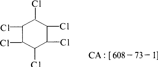 | 释义 | 六六六BHC;HCH残留性很强的广谱有机氯杀虫剂,化学结构式: