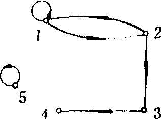 集x上的二元关系R也可用关系图表示,当 (x,x)∈R时,点x到自身有有向圈,而 (x1,xj) ∈ R且 (xj,xi) ∈ R时,则既有从xi到xj的有向线,又有xj到xi的有向线(按定义,它们是不同的!). 例如,A= {1,2,3,4,5} 上的二元关系R={ (1,1),(2,3),(1 ,2),(2,1),(3,4),(5,5)} 的关系图为