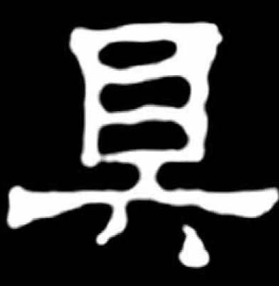 ❸ 戚戚具尔 具具,甲骨文作 ,金文作 ,小篆作 。 甲骨文从鼎从廾,“鼎” 是古代食器,雙手持鼎表示置辦食物,會意字。“鼎”或簡化爲 “貝”形,又演變爲 “目”形。本義是置辦。卜辭或用本義。銘文或用以表示器具單位,“一具”猶言“一套”。或指器具,或用作人名。又或讀 “俱”。 楚簡帛文作 ,沿襲古體。秦簡牘文作 ,古隸典型。 具jù (甲) (篆) 会意字,甲骨文为双手捧着鼎,意为准备食物,也包括盛食物的器具。故作动词有“准备”的意思,作名词有“器物”的意思。作声符生成的字有: ju 阴平:俱(姓氏) 上声:椇(枳椇,可入药) 去声:惧(畏惧) 俱(俱乐部) 飓(飓风) 犋(畜力单位)