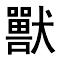 另见:饲养 饲料 畜圈 鸣叫 役使 ☚ 家畜 驴 ☛ 兽獸shòu❶哺乳动物的通称。如:野兽,走兽,兽医。 ❷比喻野蛮, 缺德。如:兽心,兽行,兽欲,禽兽不如。 兽(獸)shòuⅠ (哺乳动物的通称) beast; animal: 猛 ~ beast of prey; 野 ~ wild animal; 飞禽走 ~ birds and beasts Ⅱ (比喻野蛮; 下流) beastly; bestial: 人面 ~ 心 a beast in human shape; 他 ~ 性大发。 The beast in him came up. ◆兽环 door-knocker; 兽栏 pit; 兽力(拖曳的)animal-drawn; 兽皮 hide; 兽行 brutal act; brutality; 兽性 brutish nature; barbarity; 兽性大发 give full play to one's animal disposition [brutish nature];兽性难改 Wild beasts never change their nature.; 兽穴 shed; den; lodge; lair; 兽医 veterinarian; farrier; hippiater; veterinary surgeon; vet; 兽疫 animal disease; epizooty; pan ̄ zootic; 兽欲 animal desire; 兽中之王 king of the beasts; lion 兽shòu❶ 兽聚鸟散|兽困则噬