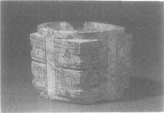 | 释义 | 兽面纹玉琮 兽面纹玉琮铜石并用时代良渚文化。高7.2厘米,口径8.3—8.5厘米。1982年江苏省武进县寺墩墓出土。江苏省南京博物院藏。此琮以透闪石磨制,玉质浸蚀后呈乳白色,上有翠绿与褐红斑纹,形制为内圆外方的筒形,四角切作委角。器外壁的每面均有一垂直凹槽将外壁分成四组折角块,每块又以窄槽分作上下两节,两节均以折角线为中心饰兽面纹。上节的兽面以阳刻的圆眼和凸起的折角方嘴构成,眼圈两侧以三角形弧线为眼角。下节的兽面以椭圆形凸起做眼睑,以阴线双圈做眼,两眼间以扇形凸面相连,嘴与上节兽面相同。此两种兽面均在眼睑、嘴、边框等部位刻细密的云纹、弧线和横竖直线饰纹。考古工作者用放大镜和显微镜对实物及拓片进行了仔细的观察,确定这些图案的线条采用了琢刻两种手法,眼圈用管钻琢成。这是此墓所出玉器的精品,也是迄今所见代表着原始社会玉器发展的最高水平的作品。良渚文化见“兽面纹玉圆筒形器”条目。