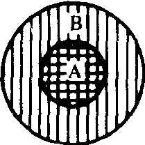 指两个或两个以上的语言成分在语言结构中所占的位置一个被包含在另一个之内。即A出现的地方B都能出现,而B出现的某些地方A不能出现。它们的关系如图: