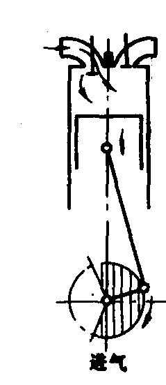 图1 四冲程工作循环示意图 图2表示二冲程工作循环的原理。它仅有压缩行程和膨胀行程交替进行。新鲜气体的供给和燃烧后废气的排出,是在活塞下止点附近分别借膨胀行程和压缩行程的一部分进行的,没有单独的进、排气行程。
