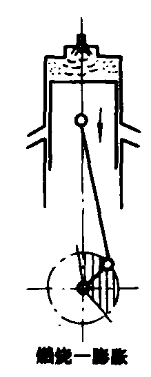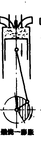 图2 二冲程工作循环示意图 在多缸内燃机中,各个气缸内工作循环交替进行,工作次序称为发火次序。 主要机构和功用 各种类型的内燃机其主要机构和系统均大致相同。通常有:❶曲柄连杆机构。将活塞的往复运动转变为曲轴的旋转运动。 ❷进、排气系统。按时将进、排气门打开或关闭,使新鲜气体及时进入气缸,燃烧后使废气及时排出。增压内燃机的空气来自增压器。 ❸供油系统。将燃油单独送入气缸,或使燃油和空气按适当比例配制成混合气后再送入气缸。 ❹冷却系统。使内燃机受热零件在适宜的温度下工作以保证工作可靠并获得良好的内燃机动力、经济指标。 ❺润滑系统。将一定数量的清洁润滑油送到各摩擦部位以润滑、冷却和净化摩擦表面。 ❻起动系统。使内燃机由静止状态过渡到运转工况。汽油机除了上述机构和系统外,还要增设点火系统,进入气缸的汽油和空气的混合气靠火花塞产生的电火花点燃。 应用 内燃机的型式、结构、外形布置和性能须满足配套使用要求。一种缸径内燃机常发展为许多变型,构成一个系列,借以适应不同用途的需要。由于汽油比柴油价格高以及汽油容易起火等原因,农业机械以应用柴油机为主。在某些小型园艺拖拉机、植保、农副产品加工及林业机械中,因要求内燃机的体积小、重量轻以及运转平稳等原因,则采用小型汽油机作为动力。内燃机性能通过一系列技术经济指标来反映,根据目的不同,所选用的指标也不同。对控制质量和配套来说,常用的指标是功率、转速、扭矩、燃油和机油消耗率、调速性能、废气排放、排烟、噪声、振动以及可靠性、耐久性等。有些指标如功率和燃油消耗率随环境条件而变,常需换算至标准大气状况下以资对比。有些指标是相互制约的,此长彼消,应当按照用途把这些指标调整到最佳的折中值,许多内燃机的使用工况是变化的,衡量内燃机的性能优劣,最好看其性能曲线,即有关指标随工况而变化的关系曲线(见内燃机特性)。 发展趋势 ❶降低内燃机的燃油消耗率,历来是改进内燃机的重要目标,主要途径是改进燃烧和提高机械效率、减少冷却损失和加强对废气能量的利用。 ❷开辟新能源。研究内燃机燃用代用燃料的技术。利用再生能源可减少内燃机对石油的依赖性。这类代用燃料有植物油、甲醇、乙醇等。利用有机排放物和排污制取沼气作为动力燃料,对缓解农村燃料缺乏和减轻环境污染有重要意义。煤有可能成为内燃机的一种燃料来源。 ❸改善对环境的污染,包括废气净化和降低噪声。 ❹提高材料的利用程度,减轻内燃机的比重量及提高强化程度。 ❺提高可靠性和延长使用寿命。基础是提高零部件的质量和采用新技术、新材料。 内燃机internal combustion engine又称发动机、热力发动机或热机。一种通过燃料在气缸内燃烧将化学反应释放的热能转化为机械能的动力机械。由机体、曲柄连杆机构、配气机构、燃油供给系、点火系、冷却系、润滑系、电器设备和起动装置等组成。内燃机按使用燃料分为煤气机、汽油机和柴油机;按结构分为往复活塞式和旋转活塞式;按工作循环的行程分为四行程和二行程;按进气方法分为自然吸气和增压两种。 内燃机将燃料引入气缸燃烧,通过燃气膨胀,推动活塞、曲柄连杆机构,输出机械功的热力发动机。它包括汽油机、柴油机、煤气机等。自19世纪中叶问世以来,已有150年历史。由于热效率高、移动性好、功率范围宽广,在工业、农业、交通运输等各个领域得到广泛应用。在汽车上,无一例外都以内燃机为动力;世界船舶总功率中,约有70%以柴油机为动力;铁路运输中,干线内燃机车已占70%。中国1908年造出了第1台煤气机,1949年,年产量为7300 kW。20世纪90年代全国内燃机主机厂300多家,零部件生产厂2000多家。1996年以来,年产量一直保持在1700~1850万台水平,其中单缸汽油机和柴油机为1640万台,是世界最大的单缸机生产国。全世界内燃机年总产量达8000万台。内燃机的技术参数因用途不同相差悬殊,现以车用为例,大致为:平均有效压力0.6~0.9 MPa、转速4400~5200 r/min、活塞平均速度11~14 m/s(轿车用汽油机);燃油消耗率210~240 g/(kW·h)(轻型货车用柴油机);无故障工作时间1000~2500 h(高速柴油机);大修期(1.5~2)×104 km(轿车用汽油机、柴油机)。 内燃机 内燃机neiranji燃料在内部燃烧的热机,由燃烧生成物——燃气作工质对外作功,热量与功的转换是在热机内直接进行的。内燃机的燃料有汽油、柴油、煤气等,对外作功的方式可以分为往复式和旋转式。喷气发动机也属于内燃机。往复式内燃机又分为四冲程一个循环和二冲程一个循环两种。按汽缸个数分又有单缸和多缸(双缸、四缸、六缸等)多种。内燃机有很多优点,它比蒸汽机精简了一套锅炉等设备,结构紧凑轻巧,热量损失少,热效率为20%~45%左右,比蒸汽机高,燃料和水的消耗低,操作简便,尽管它不能利用廉价的固体燃料煤,但由于具有以上优点,在工农业、交通运输、国防领域中得到广泛的应用,成为重要的动力设备,特别是在石油工业中,野外作业多,流动性大,既要求大功率,又要求结构紧凑,使用内燃机是最合适的。 ☚ 工作物质 汽油机 ☛ 内燃机燃料直接在原动机内部进行燃烧并借助于工质状态变化实现作功的机器。由气缸、活塞、连杆、曲轴等主要机件和其他辅助设备组成。燃料燃烧所产生的高温高压