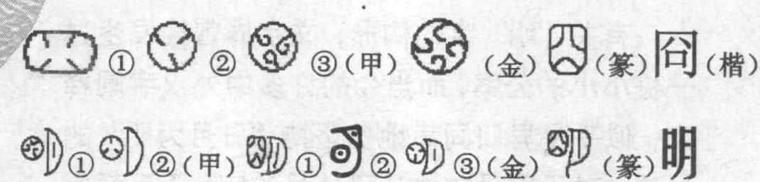 冏(音窘)与“明”既是俩兄弟,又是两个较有文化含量的字,同以ng(ㄥ)为韵母,同出于一个生活原形。 甲骨文❶的“冏”,是个象形字,它取象于远古时代人们在宋居的土墙上掏挖的简易窗口,其中内伸的四个门牙形状的齿,是安装在窗口上窗棂的初形,一般用树枝、陶片或兽骨作材料,主要是防范野兽的侵袭和从窗而入的不速之客的到来。土墙上开凿窗口,也是室内瞭望、采光、通风的需要。甲骨文 ❷将窗口的轮廓变为圆形,减少了一个窗齿,甲骨文 ❸可能是利用树枝的自然形态,将三个窗齿作了一些艺术性的浪漫处理,但其含意不变。 金文的 “冏”,在甲骨文 ❸形状的基础上,又增加了一个带有浪漫色彩的 “齿”。大概到了小篆时代,人们在土墙上安装的窗口,形式有所改进,档次也有所提高吧,这时的 “冏”,已经是有窗格子的形状了。楷书将小篆 “冏” 的象形符号作了文字化的处理,上部的两个窗格变作一撇一捺的“八”,下部的一个窗格连同窗框变成“口”,写作 “冏”(异体写作“囧”)仍为象形字。 “冏”,从甲骨文到小篆都是不断变化的象形字。我们从这个“窗口”依稀看见人类进步的一些踪迹。窗户是了解世界和被世界了解的口岸,从而就不难理解,从古到今人们为什么给予窗牖所寄托的希望和所做的文章不会太少。 冏的本意是墙壁上安装的窗口。由本意直接引申的意思是明亮。《说文》: “冏,窗牖丽楼闿明,象形。”丽楼,透光明朗的意思; 闿明,敞开快乐的意思。可以说许慎对“冏”的解释是相当到位的。后来为了扩大“冏”的义项,增加形符“火”(阳光的标意),变作从火冏声的形声字写作“烱”(后又简作炯)。赋予“炯”的义项都是“冏” 的引申之意: ❶明亮。晋郭璞《井赋》: “乃回澄以静映,状冏然而镜灼”是将井比作明亮的窗户。 ❷光明。南朝梁江淹《张廷尉杂述》: “冏冏秋月明,凭轩咏尧老。”是将月光比作明亮的窗户。 ❸光亮。杜甫《法镜寺》: “朱甍半光炯,户牖粲可数。” 是说一扇窗户使整屋子得到明亮。 ❹心地光明曰炯心。李白 “高节不可夺,炯心如凝丹。”(《感兴》) ❺光明正直曰炯介。 ❻形容目光明亮曰炯炯。冏,殷卜用作祭祀的一种形式,“王其登南冏米唯乙亥。” 冏,在这里是形容词,冏米,是舂过皮壳带有发亮色泽的小米,即后来称作明粢的谷物(粢音资,六谷的总称),古人用以祭祀祖先。卜辞是说,商王在乙亥这天用发亮的精米作祭品祭祀。 汉字是形象思维与逻辑思维的庞大系统。造字者的想象异常奇特,他们知道“冏”与“月”虽然相去甚远,但互为条件却产生 “明”,故从冏(同)所组构的汉字都具有明、远、长、隔的含意: 商: 星名,参、商之星虽然明亮,但相距甚远,互不相见。 裔: 偏远的地方; 远代子孙。 矞:(音预)天空的彩云。 絅: (音窘)罩在外面的单衣。取隔阻之意。 扃: (音窘)门闩; 从外关门。取隔阻之意。 苘:(音请)即植物苘麻,纤维可做绳子。取长意。 洞: (音窘)形容水域远。 坰: (音窘)形容地域远。 迥: (音窘)形容距离远。 詗:(音兄)有距离的窥视、侦探,如刺探、诇察。 冏,在墙曰牖,在屋曰囱。屋、壁的窗口,天生的与明亮结缘。 甲骨文❶的 “明”,从冏从月,冏亦声,为形声兼会意字。甲骨文 ❷与一款相比,虽笔画有所简约但标意无别。甲骨文 “明” 的取象是,人在居室内通过 “冏”观察到夜空中一轮明月。明的本意是月明,在古人的意念里,光与明是有区分的,就一般而言,日 (太阳)生光,月(月亮)生明,而月生明的“明”以什么形象来标意呢?造字者是用现实主义与自然想象相结合的手法造出了这个“明”字的。明字的造出,实在有诗一般的意境。他的这种诗的意境,比李白 “床前明月光,疑是地上霜。举头望明月,低头思故乡。” 的产生起码要早两千多年。况且李白的《夜思》措词早就有学者提出质疑,“床前明月光” 于自然不符,假如诗圣不是露天下榻的话,那么,那个 “床” 字实在应该是个 “窗” 子。不过后世文人却用 “无意于工而无不工” 的评说粉饰过去了。 有关“明”字的构形,文字界曾经发生过一桩小小的公案,而当今的许多中外汉字阐释家,似乎是异口同声地仍坚持“日月为明” 的说法。对于甲骨文中从日从月的字,王玉哲先生早就有了释 “朝”的剔透论证,文字学界对此也是基本认可的,我们何不走近自己的书橱去翻阅一下呢? 当一股谬误如潮水一样涌来的时候,浊浪滚滚,是根本无法听从辩解的。这样说并不意味要将“明”退回到甲骨文、金文和小篆的字形,而是说我们起码应该尊重古人的劳动创造。“明”,许慎在《说文》中解释得也相当清楚,“明,照也。从月,从冏。”至于说“古文明,从日。”是因为许氏压根儿就没有见过甲骨文,以“朝”误“明”是情有可原的。 明,这个极富诗情画意的字,是造字者刻意将 “月” 从 “冏” 中透析进来,特取明朗之意的。因为在青纱笼罩,万籁俱寂的世界里,黑夜的朗月似乎比白昼的太阳更可爱。