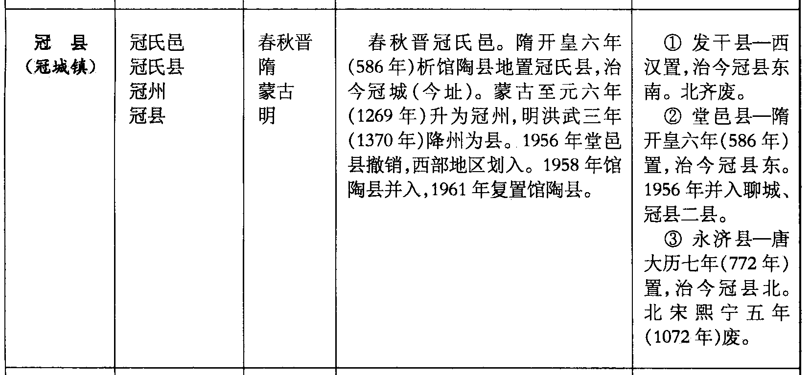 ❸ 永济县—唐大历七年(772年)置,治今冠县北。北宋熙宁五年(1072年)废。