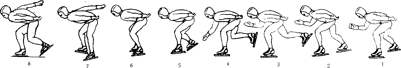教学重点 ❶单脚蹬冰时重心要确保移向支撑脚,支撑脚的踝关节要随之前屈,以防重心没有落到支撑脚上反而使支撑脚向前滑走。 ❷开始练习时蹬冰幅度要小一些,蹬冰要短促,收腿要快,双脚滑行要长一些。滑行中重心位于脚掌或脚心,防止臀部后坐。 ❸交替蹬冰交替滑行移动重心时, 应准确地落在支撑腿上(头、膝、足尖在一垂线上),浮脚着冰时不能向前或向侧迈出。 ❹做重心先放在支撑脚上的单蹬双滑练习,再做滑行中的单蹬双滑练习。在单蹬双滑练习中,逐渐减少双脚滑行的距离,最后过渡到交替蹬冰交替滑行。 ❺交替蹬冰交替滑行经过练习后, 应逐渐加长单脚支撑滑行的距离和时间,提高单脚支撑能力,再降低蹲姿和改变收腿动作, 即可变为速滑直道技术。 ☚ 冰上行走 冰上急停 ☛ |