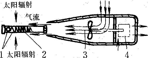 图1 净辐射表感受面原理图 原理与结构 常利用一块上、下两面涂黑的板,水平放置,根据上、下两个黑色表面的温度差测定地面的净辐射。各种类型净辐射表的基本构造是:感受元件都是由两块表面涂黑,特性完全一致的平板构成(如图1)。要求上、下两个感受面的黑体能够吸收所有波长的辐射。当平板水平置于自然条件下时,其两面的温差与它们所接收到的净辐射通量成正比。温差的大小由串联在上、下感受面背面的温差电堆测定。这种原理的净辐射表所测得的净辐射与温差之间的关系,可以用下式非常近似地表示出来: Фe=(T1—T2) 〔K+f(v)〕, 式中 Фe为净辐射,T1、T2为感受器上、下面的温度,K为仪器常数, f(v)是与感受器上、下面风速有关的函数值。由式可知,只要解决风速影响的问题,即可由温差来决定净辐射通量。 类型 通常有三种办法来解决风速影响的问题,因而有以下三种类型的净辐射表: 风速订正型净辐射表即热电式雅尼舍夫斯基相对净辐射表。感受器是由中间用绝热材料隔开的两块相同的铜盘构成,铜盘上面涂有能够吸收所有波长的黑色涂料。温差电堆的冷、热接点穿过中间的绝缘层串接于上、下感受面的背面。测定时,仪器完全裸露,安装于距下垫面一定高度上。上、下两个感受面受到不同辐射通量的作用,产生温差,并由温差电堆表示出来。为了抵消风速对温度的影响,现在控制净辐射不变情况下,改变感受面上、下的气流速度,作出一系列在不同风速条件下的“温差—风速”订正曲线。使用时,同时测定温差和仪器感受器周围的风速,根据风速在上述曲线上查出订正的温差电流值与换算系数求得净辐射通量。这种类型仪器的缺点是: 由于自然大气中的风速不易精确测定,同时自然风速的变化情况与实验模拟的情况有很大差异,故可引起很大误差。仪器的感受器直接暴露于自然环境中,感受面极易污染。此外,当有凝结、降水出现时不能使用。 人工通风型净辐射表 它的感受器也是两面涂黑的平板, 由温差电堆来测定板上、下两面的辐射通量值。为了抵消在测定时自然风速对温差的影响,仪器上附有人工的通风器(如图2)。通风器的气流均衡地吹过上、下两个感受面。当控制通风速度达到一定值后,自然风速对感受器的影响可以忽略。这时f(v)近似常数。故测定时只需根据温差大小与换算系数就可求得净辐射值。这种仪器在使用时, 应注意使上、下面通风速度一致、稳定; 通风管口朝向下风方向。当自然风速变化在0~12米/秒时,误差小于3%。缺点是仪器体积较大, 会使地面上形成较大阴影, 而且需要电源。此外, 感受面易受污染, 有凝结及降水时也不能使用。 ![]() 图 2 通风型净辐射表构造示意图 1. 感受面; 2. 温差电堆; 3. 通风器; 4. 马达 防风膜型净辐射表 感受器的构造与通风型相同。在测定时, 为了使感受器不受自然风速对温差的影响,用特定的聚乙烯塑料薄膜制成半球形的防风罩,加盖在上、下感受面上,这样f (υ)可以近似常数。薄膜的厚度为0.1毫米时,在波长为0.3~40微米之间的辐射都能透过, 其透过率大于90%。只有在3.5微米、7微米、14微米三个波长附近有很窄的吸收带,对测量精度影响不大。聚乙烯薄膜防风罩固定在仪器上、下感受面后, 使用时将罩内充干燥空气即成半球形。当防风罩上有凝结物出现时, 可利用附加在感受器外围的电加热环提高感受器周围的气温, 以防止或消除凝结现象。也可对半球罩外面送风, 加强扰动, 以防止凝结发生。 防风膜型净辐射表构造简单, 适于农业气象工作中使用。仪器感受面的尺寸标准为直径6厘米,微型的为1厘米。这种类型的净辐射表, 当在其底下感应面用里面涂黑的金属罩代替聚乙烯薄膜时, 就可当作总辐射表使用。 |