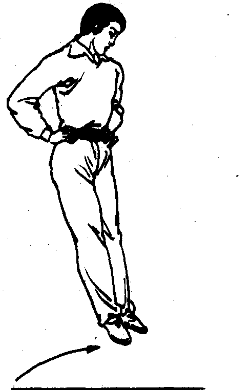 ☚ 飞步 小跨步 ☛ 击步 击步Jibu步法之一。是两脚前后开立,身体重心移至前腿,上体微前倾,后腿提起后前脚蹬地前纵,在空中以后脚内侧碰击前脚跟,随即后脚先落地的动作。