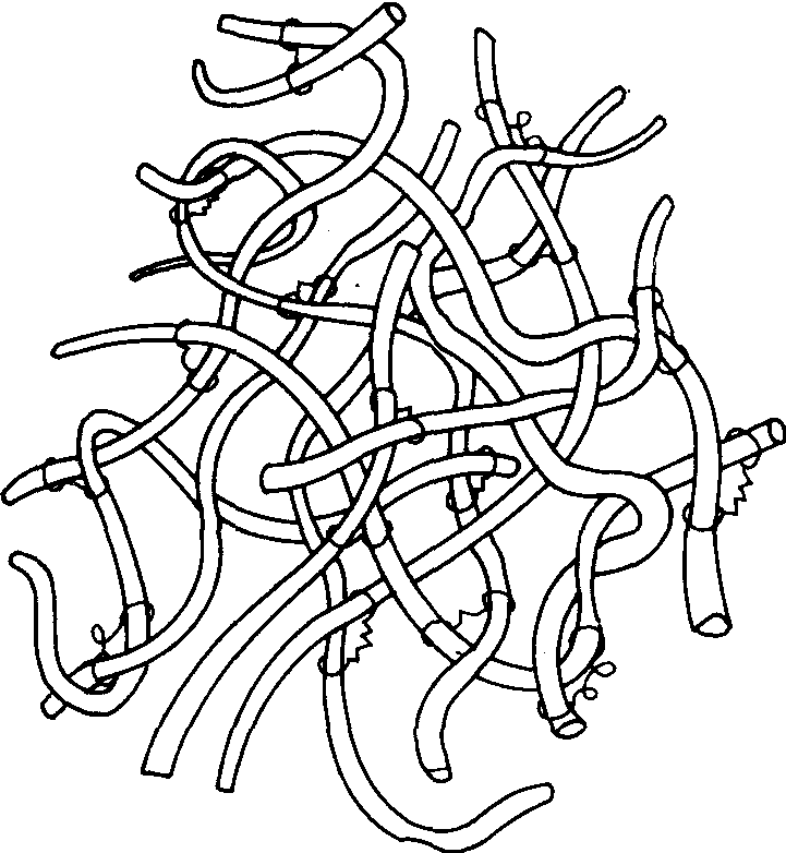 | 释义 | 分子交联键学说 分子交联键学说该学说认为,机体内的大分子,如核酸、蛋白质及胶原等,通过共价键联结成难以分解的聚集物,使生物大分子不能在体内发挥正常的生理功能。这些交联键以最小的干扰,可以产生极大的损伤,从而导致机体衰老。学者们对这种理论作过设想,如果这种交联键(如甲醛分子)搭到脱氧核糖核酸(DNA)分子的一股上,势必要改变DNA原有的精细结构,于是机体的防御机制就要将被干扰的这一段切掉(图1-2),然后以另一股作为样板来修复被切除段的缺口。假若机体的防御机制尚未将被交联键钩住的那一股切除,它又要钩上DNA的另一股,这样就把DNA的双股交联起来。交联后的DNA可能以两种方式发展。另一种可能是交联的双股均被机体的防御机制切掉,这时因一点上的双股信息均被切除,使失去了供修复使用的样板。另一种可能是被交联的DNA双股没有被切除,这时DNA在有丝分裂期将发生双股分离与复制,于是便形成为一个“Y”字形的畸形物(图1一3)。这是因为交联键分子在DNA的某一点上紧紧地锁住了双股核苷酸链,阻止了其正常的分离与复制。由于“Y”字形DNA无法恢复正常,因此不能完成细胞的分裂过程。DNA这种股间交联是致命的变化,所以必然导致细胞的死亡。目前已知甲醛及一些烷化剂可以使DNA发生股间交联,并且这种交联将导致动物衰老和死亡。但是,它们导致DNA发生股间交联的机制还不清楚,只是一种设想。有人认为,DNA是受充分保护的生命物质,它受外界环境的影响极小,因此发生DNA双股交联的机会也极少,所以DNA交联可能不是最大的危险,而最大的危险是来自蛋白质的交联。因为机体内许多重重交联所形成的聚集物(如玻璃样和淀粉样物质)多半都是蛋白质。这些交联键分子同生物大分子重重形成的稠密聚集物使酶类无法进入其中,因此很难分解它们(图1—4)。由于聚集物在细胞内外愈积累愈多,最终防碍机体的各种正常生理功能,于是导致衰老和死亡。胶原的交联也是导致衰老的重要原因。有人曾作过大鼠尾腱(尾腱由胶原所组成)热收缩的研究,发现尾腱中胶原交联的程度是随着年龄的增长而增加的。