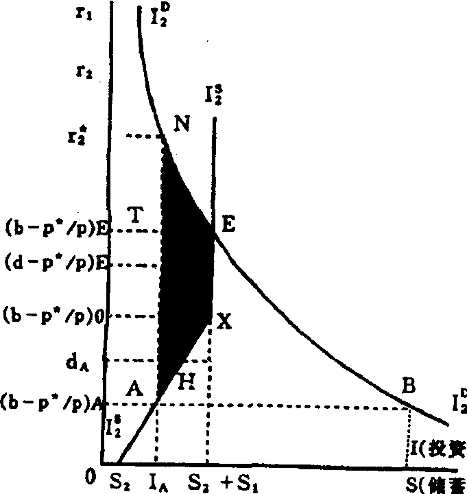 这里, ∂为商业银行存款利率, P*/P是预期通货膨胀率,故d-P*/P是存款的实际利率。 A的投资靠自我融资,故其收入中有相当一部分会以商业银行存款形式储蓄起来,这就意味着: 于是就有 这样便得到A的储蓄一投资关系式: