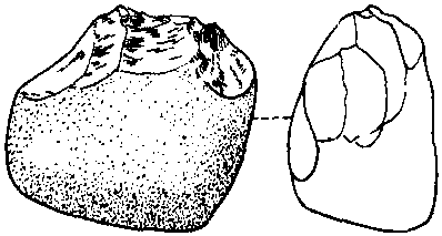 2.手斧 奥杜威峡谷旧石器早期的石器工具 砍砸器是大型石器工具,经交互打击,形成尖端和钝端两部分,成为原始手斧,长度多在8厘米以上,重量多为0.5千克左右。砍砸器多数用石核和砾石制成,少数用大石片制成;刀口钝厚、器身粗重,有砍劈、砸击、挖掘多种用途;除用于加工生活资料外,还用于制造工具、挖取植物块根、砸碎坚果等。 砍砸器相继出现五种类型:单刃、双刃、多刃、端刃和尖刃。前三类刃口形态与刮削器相似,后两类中的端刃型,其主刃的宽度就是器身的宽度,形态分普通端刃砍砸器和手锛(Cleaver)。前者器身宽短,刃口多呈缓弧形,个别呈一字形,其侧边曾经加工修理;后者则器身较长,通体呈长梯形。端刃型具有刃宽、弧度小、接近平直的特点,既有单面加工,亦有双面加工。尖刃型石器从形态和加工特点上看,可分为正尖和角尖两种;从形状和功能上分,还包含用交互打击法加工而成的手斧。器身两面遗满小石片疤痕。 砍砸器大都使用锤击法修制,加工方式基本可分两类:其一用石锤轻敲毛坯边缘,将毛坯修成一定的形状,其刃缘常呈多缺口形或波纹形,刃口上的小石片疤痕深浅不一;其二是手握毛坯,食指垫于被加工石缘,随打击点移动,器形规整、刃缘匀称,小石片疤痕呈阶梯浅平状。 锤击法修制石器工具出现下列方法: 1.背面加工法。石锤由破裂面向背面方向打击,修理痕迹只见于石器背面。此为旧石器加工的主要方法。 2.破裂面加工法。打击方向与背面加工法相反,修理痕迹只见于破裂面。它与工具的加工无关,而与石核的修整和打片有关。 3.错向加工法。毛坯的两侧或一端一侧均有修理痕迹,但两处加工方向相反,如左侧向背面加工而右侧向破裂面加工。 4.复向加工法。修理方向不定,往复无常,刃缘显得十分曲折。 5.对向加工法。在一个窄边上进行左右相对打击,修理痕迹或相互叠压或相交于被加工窄面的中部,使之成为相当平缓的纵脊。 6.交互打击法。在毛坯侧边的左右有规律地向不同面打击。如第一下打击侧向背面,第二下打击侧向破裂面,如此有规律地交替进行。小石片疤虽见于两面,但从侧面看,其侧缘呈S形。 |