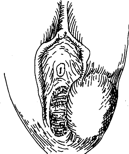 | 释义 | 前庭大腺炎 前庭大腺炎前庭大腺位于两侧大阴唇下方,腺管开口于小阴唇内侧靠近处女膜处。因解剖部位上的特点,在性交、分娩或其他情况污染外阴部时,病原体易于侵入而引起炎症。急性炎症发作时,细菌首先侵犯腺管,腺管呈急性化脓性炎症,腺管口往往因肿胀或渗出物凝集而阻塞,脓液不能外流,积聚而形成脓肿,称为前庭大腺脓肿(见图7.2-1)。局部皮肤红肿,发热,压痛明显,触及波动感,脓肿直径可达5—6厘米,病人可有发热等全身症状。当脓肿内压力增大时,表面皮肤变薄,脓肿可自行破溃,如破孔大,引流通畅,炎症较快消退而痊愈;如破孔小引流不畅,则炎症持续不消失,可反复发作。急性炎症消失后,脓液逐渐转为清液而形成囊肿,称为前庭大腺囊肿。有时炎症较轻,腺管堵塞,分泌物不能排出亦可形成囊肿,囊肿大如胡桃,病人感到外阴部有胀、坠感。急性炎症时,需卧床休息,选用抗生素,局部热敷,坐浴,脓肿形成后可切开引流并作造口术。较大的前庭大腺囊肿可行造口术,代替以前的囊肿剥出术,因造口术方法简单,损伤小,术后还能恢复腺体功能。如有条件,以激光行造口术,则更为简易、痛苦小。