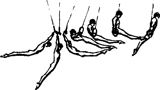 | 释义 | 前摆上 前摆上是一个中难度的基本动作,1985年的国际规则定为A组难度,1993年国际规则升值为B组难度。一般由后转肩或倒立大摆来连接。当下摆接近垂直面时沉肩振浪,向前上方兜腿。当两腿上摆过环后急剧制动,并直臂用力侧压环,积极振胸,上体快速上跟成支撑。此动作可直接成直角支撑或十字支撑,也可接支撑后摆成倒立,水平支撑或倒十字。该动作所能连接的动作不多,在高级体操运动员中运用也较少。但是,50年代前苏联运动员沙赫林的前摆上接支撑后摆成倒立却给人留下了深刻的印象。