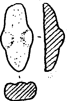 青铜时代武器附件。1960年在吉林省吉林市郊区江南乡碾磨山遗址采集。现藏吉林市博物馆。系黑色铁矿石磨制,大体呈半球形,突起面中间两侧还有两个小半圆形突起,颇似乳房,底面平整。此物是安装在青铜短剑后部的附件,起加重器作用。这类石枕状物在辽宁省发现甚多。其时代基本相当于春秋战国。此件长7.4、腰宽4、腰厚2.6厘米。