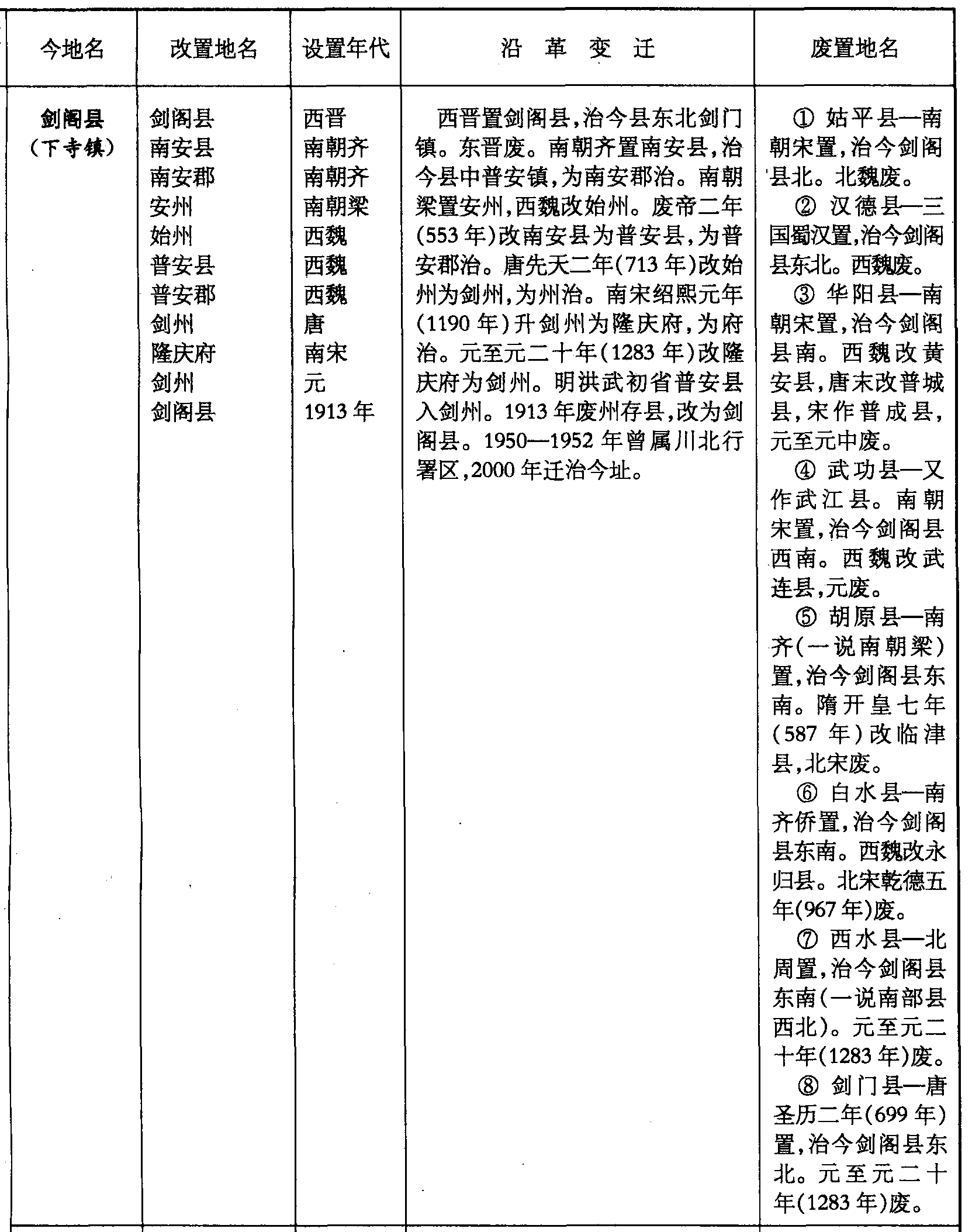 ❽ 剑门县—唐圣历二年(699年)置,治今剑阁县东北。元至元二十年(1283年)废。