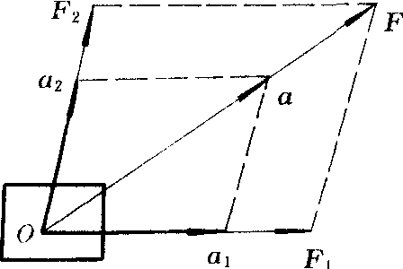 | 释义 | 力的独立作用原理 力的独立作用原理li de duli zuoyong yuanli几个力同时作用在质点上,则此质点的加速度等于这些力分别作用于此质点所得各加速度的矢量和。这个原理表明,某一力系中任何一个力都能独立地产生作用,而与其他力的作用无关,力系的总作用是每个力的分别作用的叠加。如图所示,设物体受到F1和F2的作用,它们各自独立地产生与力相对应的两个加速度a1和a2,两者互不影响。